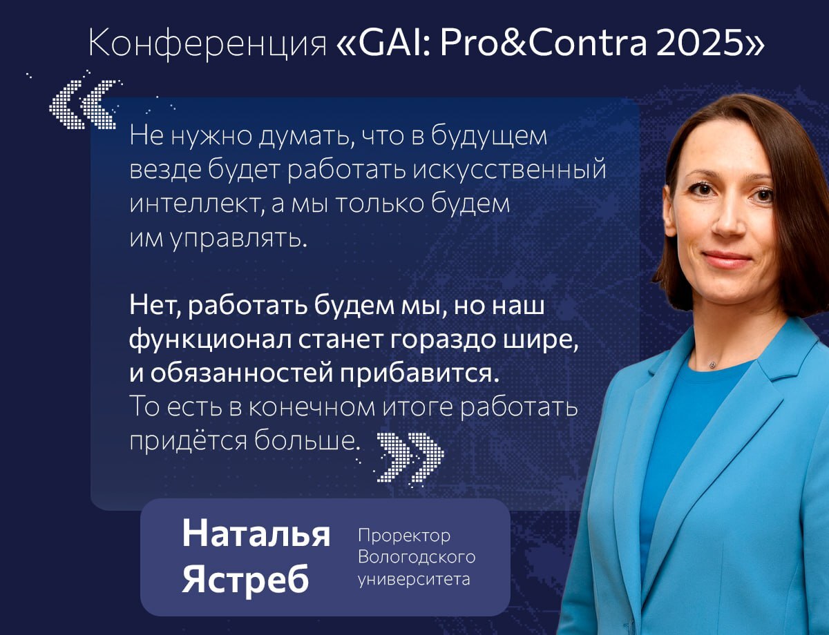 Стартовавшая 1 октября конференция «Генеративный искусственный интеллект в отраслях экономики и социальной сфере: Pro&Contra 2025» поднимает важные вопросы безопасности ГИИ. Чего мы должны опасаться и на какие риски и угрозы обращать внимание в первую очередь? Об этом мы поговорили с участником конференции, проректором Вологодского университета Натальей Ястреб.
